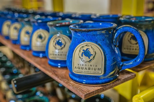 The Virginia Aquarium & Marine Science Center gift shop has souvenirs for sale to support its conservation work. Although the type of unique stoneware mugs they offer can vary, you might find classics in colors like Electric Blue or even newer glazes like our unusual Brimstone.