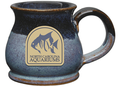 The North Carolina Aquarium Society runs the gift shops at each location. If you decide to get some gifts to support the aquarium’s work, you may find a Potbelly mug for your collection in our eye-catching Night Sky glaze, with the aquarium’s logo.