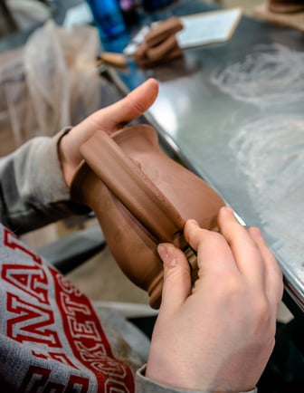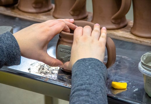 Applying a Handle to a MugNot all mug handles are created equal. Many are longer or shorter depending on the mug style. The handles on our steins are noticeably longer across the board. Every handle has to have a layer of slip, or clay mixed with water, applied to one end to secure it to the side of the mug.