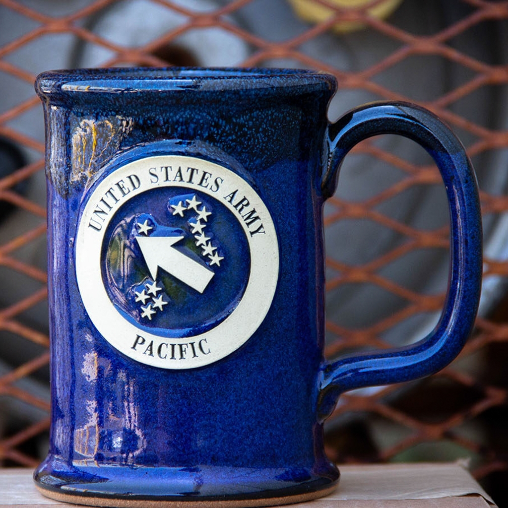 The image shown here on our 'The Potbelly' mug style is using the Blue Moon glaze color. Due to monitor variances, the glaze color shown may appear slightly different on actual stoneware. Learn why glaze colors may appear different on mug styles.