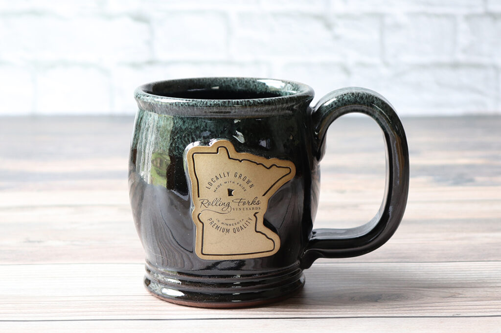 The image shown here on our 'The Potbelly' mug style is using the Dark Mint glaze color. Due to monitor variances, the glaze color shown may appear slightly different on actual stoneware. Learn why glaze colors may appear different on mug styles.