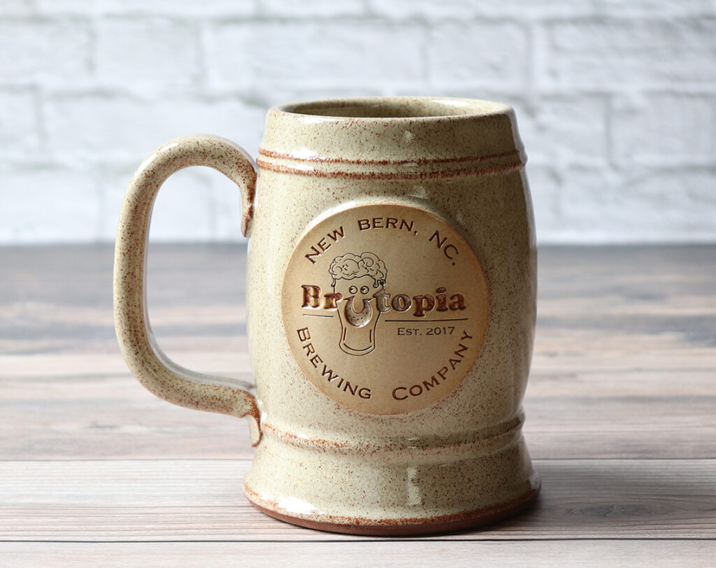 The image shown here on our 'The Potbelly' mug style is using the Oatmeal glaze color. Due to monitor variances, the glaze color shown may appear slightly different on actual stoneware. Learn why glaze colors may appear different on mug styles.