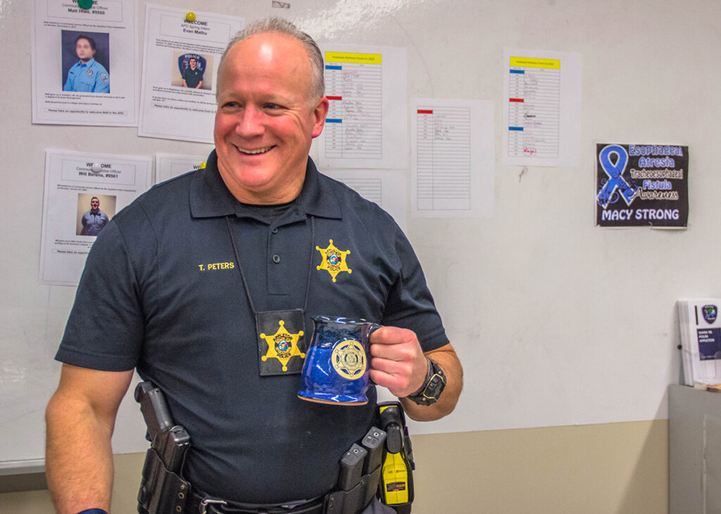 Coffee keeps most of the officers at the department going, no matter what shift they work. To help them get their coffee fix, Officer Cash said they went for custom mugs with a hometown feel. She added that the APD loves that Sunset Hill Stoneware is a local company that they can support.