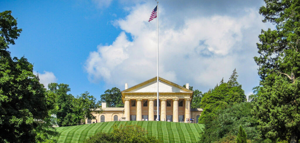 The land across the Potomac from the capital started out in the hands of one George Washington Parke Custis. He was Martha Washington’s grandson and the adopted son of first president George Washington. Custis built a mansion on the land he’d acquired using slave labor, finally finishing it after nearly 16 years due to disruptions from the War of 1812.