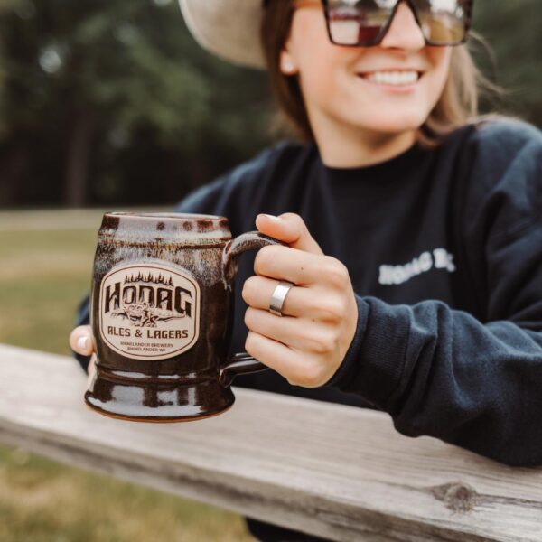 Enjoy your favorite beer or the latest craft brews in this iconic stein. Handcrafted in Wisconsin — 20 ounces; 5″h. Dishwasher, microwave and oven safe. 100% lead-free. FDA and California Proposition 65 compliant. Ounces may vary. Due to the nature of our handmade processes, styles and glazes will vary with unique appearances.