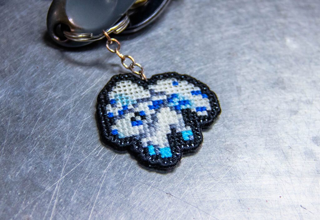 But, the pieces Mike cross stitches aren’t the sampler patterns you used to make in home economics. His current work includes art based on video games, including characters and symbols from games like Minecraft, Pokemon and the Legend of Zelda. He’s recently started an Instagram for his work. It features everything from items and icons from all of these games and more. Each piece has incredible detail and colors you’d normally never see in cross stitching.