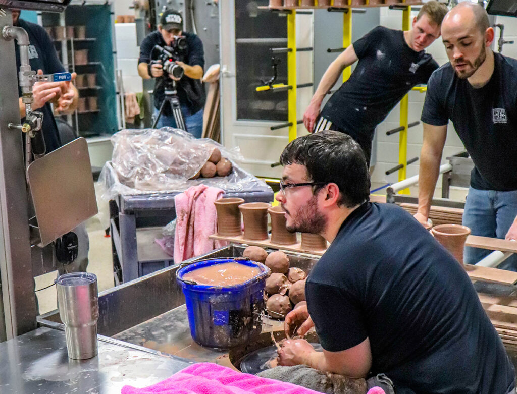 Mike’s world record was months in the making. He wanted to prove to himself that he could break the record, so he trained for months throughout the summer and fall leading up to the big day on Nov. 14. Much like he’d train for a marathon, Mike had to have the endurance to keep throwing pots consistently at the wheel for an hour straight. With the help of our master potter, Jason Sonsthagen, Mike could throw a single pot in 15 seconds in the weeks before he broke the world record.