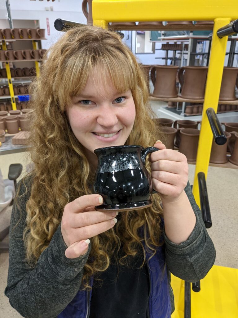 Due to the nature of our process, no two of our pottery coffee mugs are the same. Sunset Hill Stoneware embraces that. In fact, while we hold all of our products to strict quality standards, we love noting the minor differences in our mugs. Depending on who threw the clay, some may have a spiral ring of clay at the base inside the mug, or ridges the potters left behind with their fingertips. A pair of mugs in the same two-tone glaze might have different drip lines on top. Even single-tone glazes like Oatmeal might have more or fewer brown flecks depending on a number of factors during the firing process.