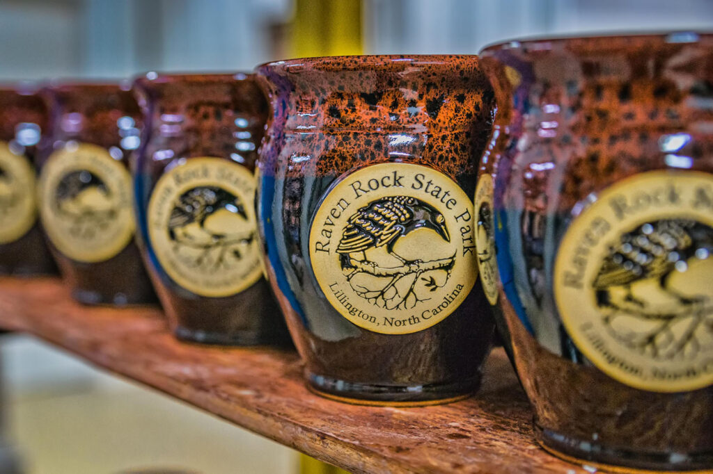 The mugs you find at Raven Rock State Park feature the bird for which the park is named, sitting on a branch. This year, you can expect to find this unusual design on the Wide Mouth and Java Taster and other designs. Look for this quality way to support the park at the visitor center on Raven Rock Road.