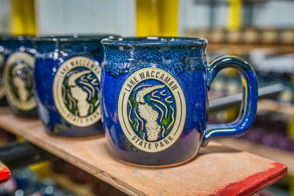 In the park’s information center, you might also find some stoneware mugs that feature its scaly residents. These Java Tasters and Executive Slims feature an alligator swimming through the glaze. Fittingly for the park’s marshes, you can find this mug in Cranberry Bog, plus Mustachio and Blue Moon on some styles. Not only do they make a great addition to your mug collection; they also fund Lake Waccamaw State Park so we can keep this natural wonder clean and thriving for generations.