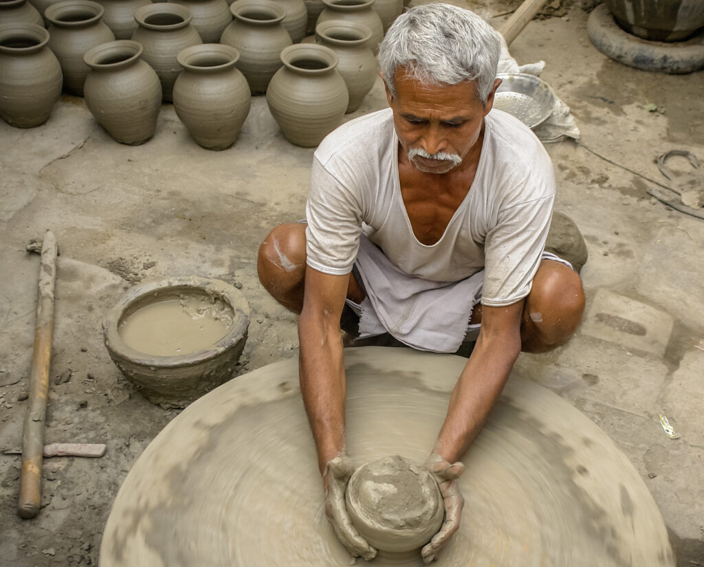 Potter making pottery in India
