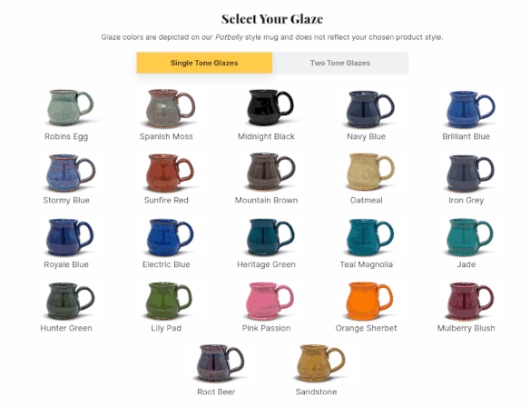 Choose from our wide range of rich, vibrant glazes. Whether you prefer subtle earthy tones or bold, eye-catching hues, our glazes enhance the unique character of each mug. Plus, every glaze is dishwasher and microwave safe!